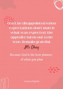 It’s also a saying that “If you expect nothing from somebody you are never disappointed.”